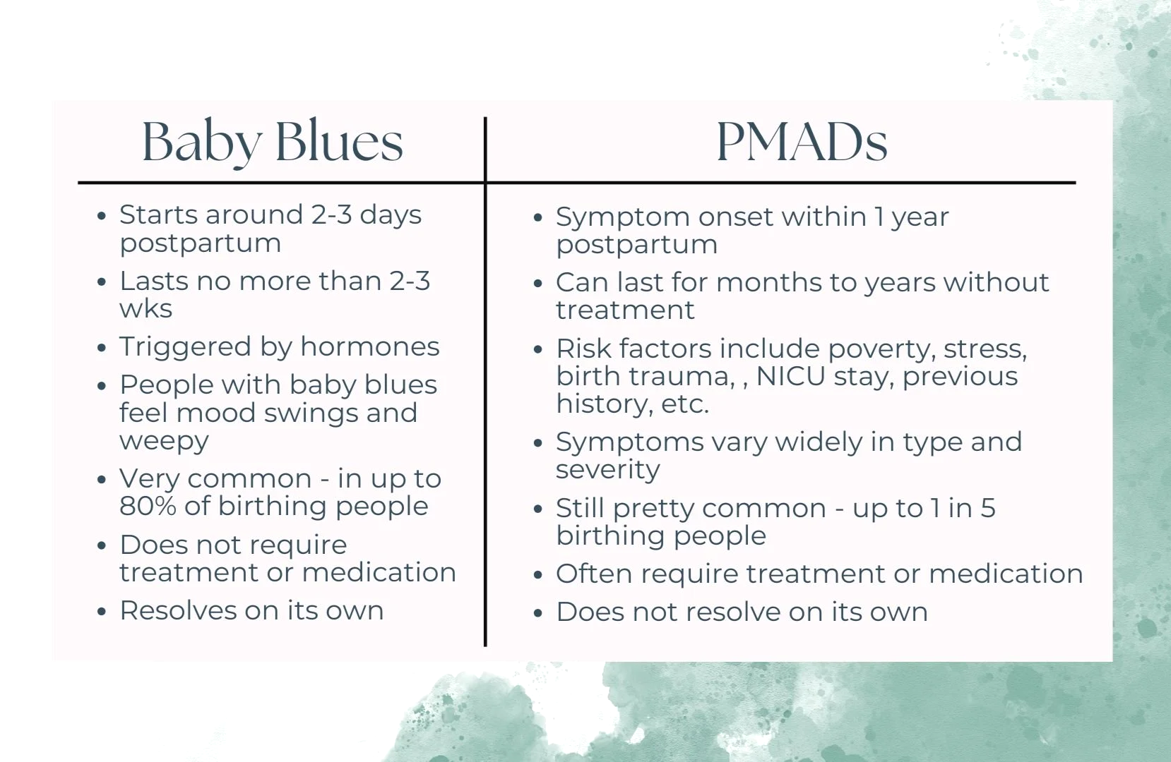 PMADs can occur during pregnancy or postpartum, and include diagnoses like: